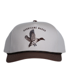 Classic duck camp vibes, modern build. The Retro Mallard Cap from Hurricane Marsh features an offwhite crown with a brown bill, finished with a vintage-style brown and black rope detail across the brim. A detailed mallard embroidery gives it that timeless field-ready look—perfect for hunters, outdoorsmen, and old-school camo fans alike.