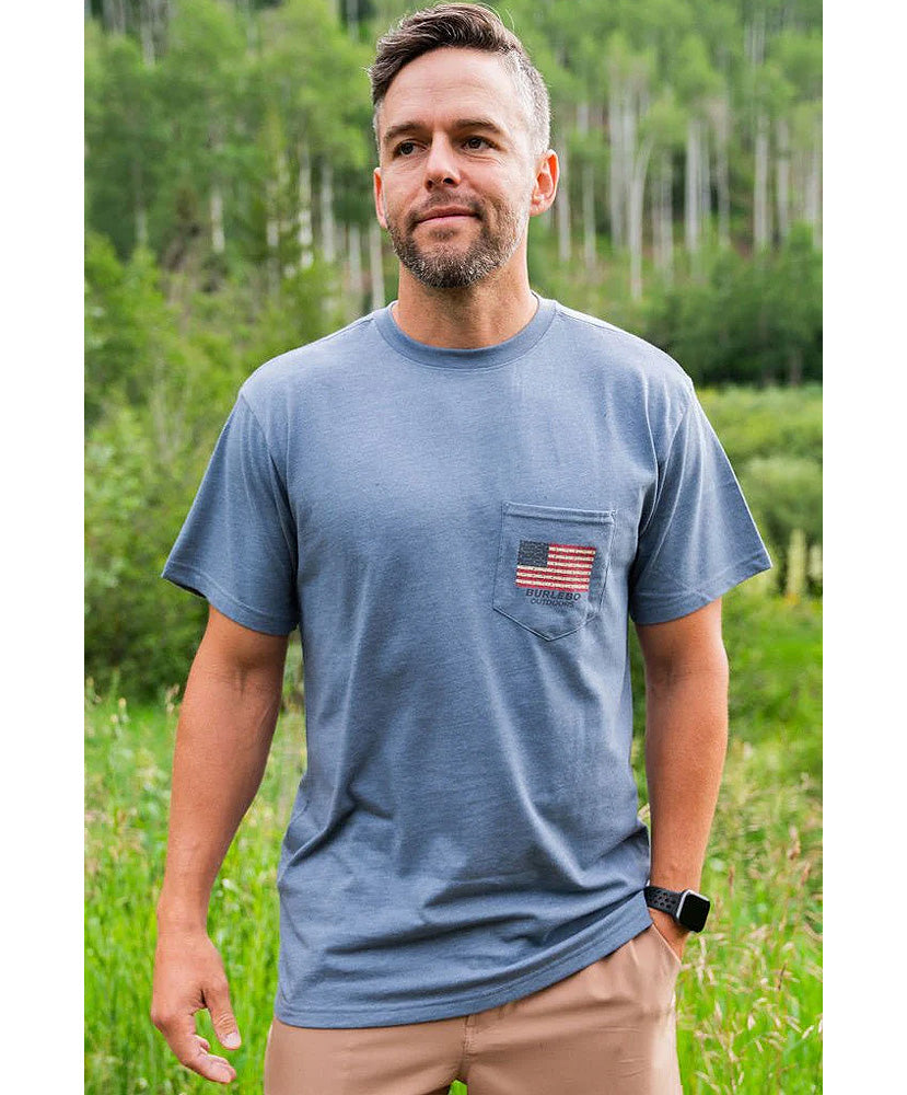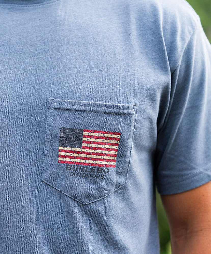 The flag and shotgun shells. What screams Freedom more than this? This short-sleeved pocket tee is designed for comfort, style, and versatility. Made from a preshrunk blend of 50% Ring-Spun Cotton and 50% Polyester, this tee offers the perfect combination of softness and durability. It is perfect for everyday wear or layering under your favorite jacket or hoodie.