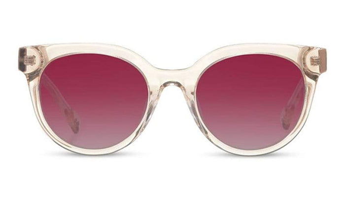 Rounded lenses and curving lines come together with this strong feminine silhouette. Real wood inlays and metal accents add a natural dimension for a look that's perfect in any situation.