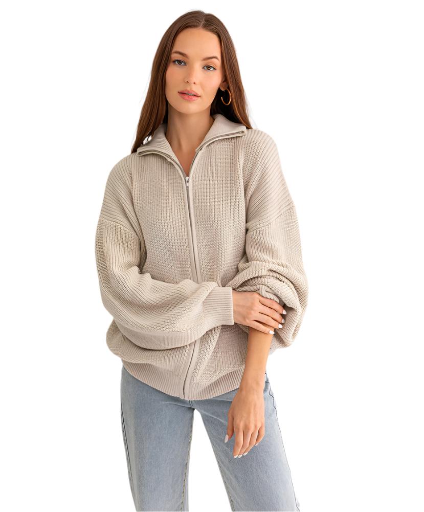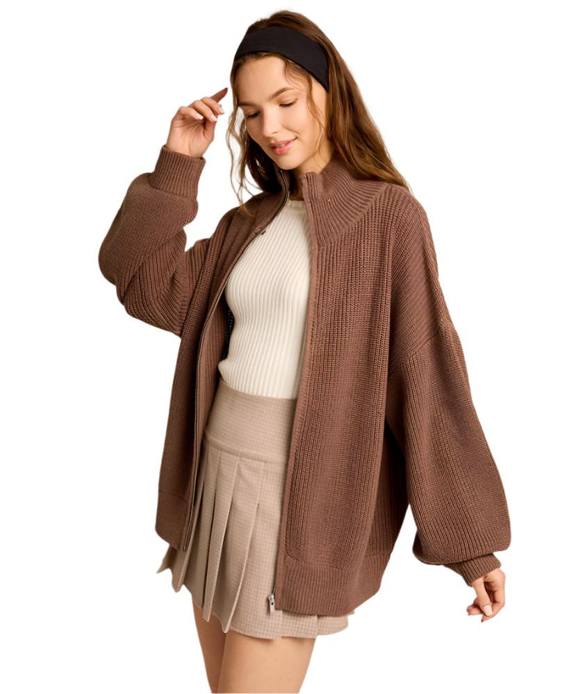 Zip into ultimate coziness with the Oliie Oversized Sweater Cardigan. This zip-up oversized sweater cardigan will keep you warm and stylish on those chilly days. No need to sacrifice comfort for fashion!