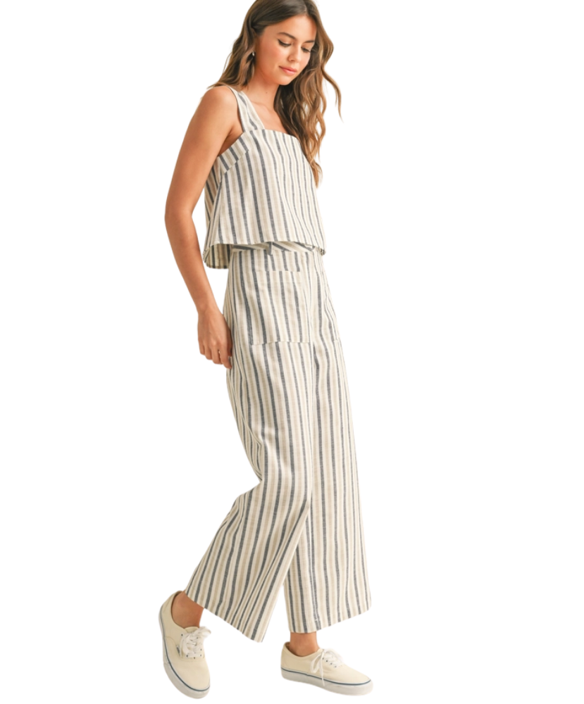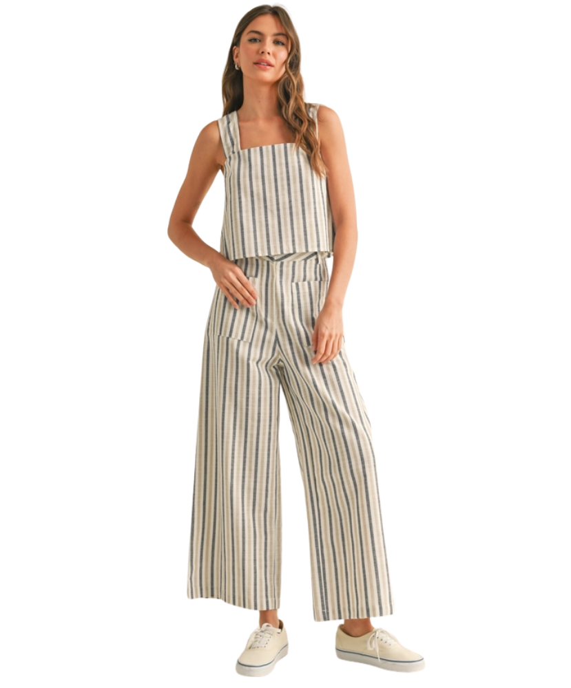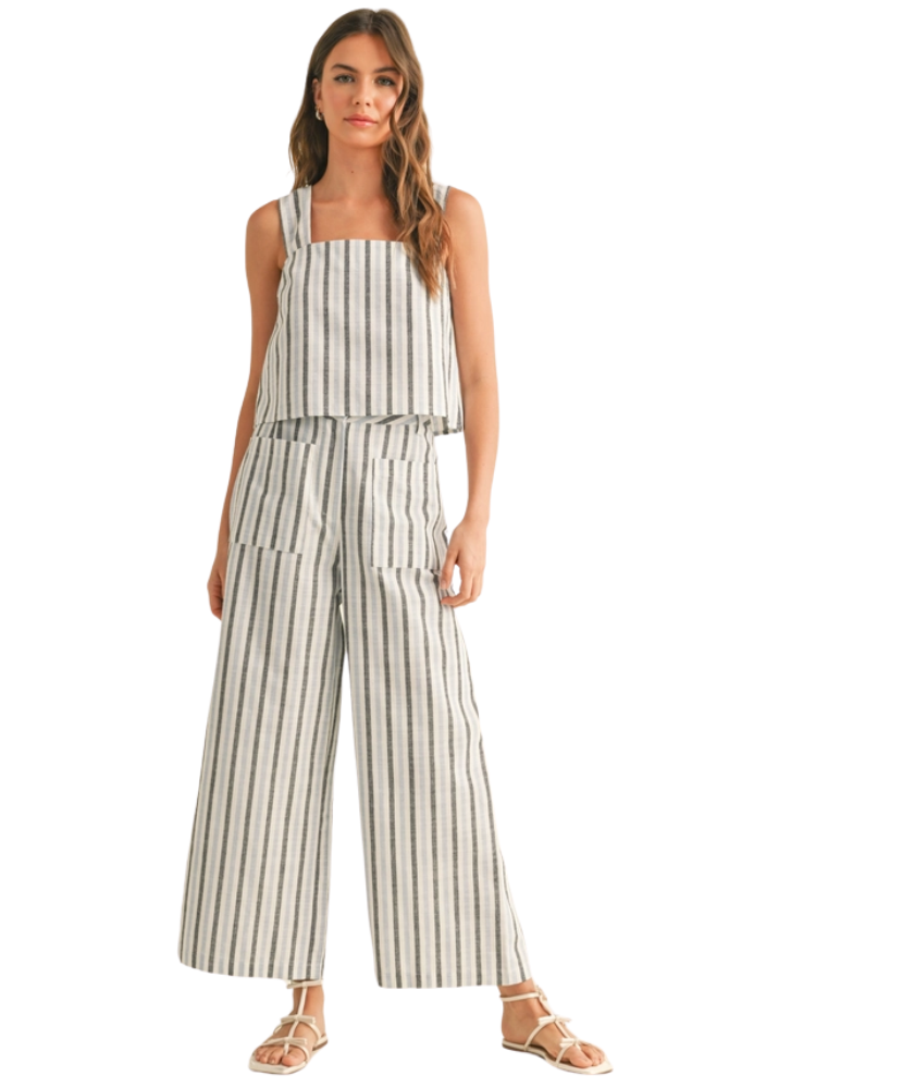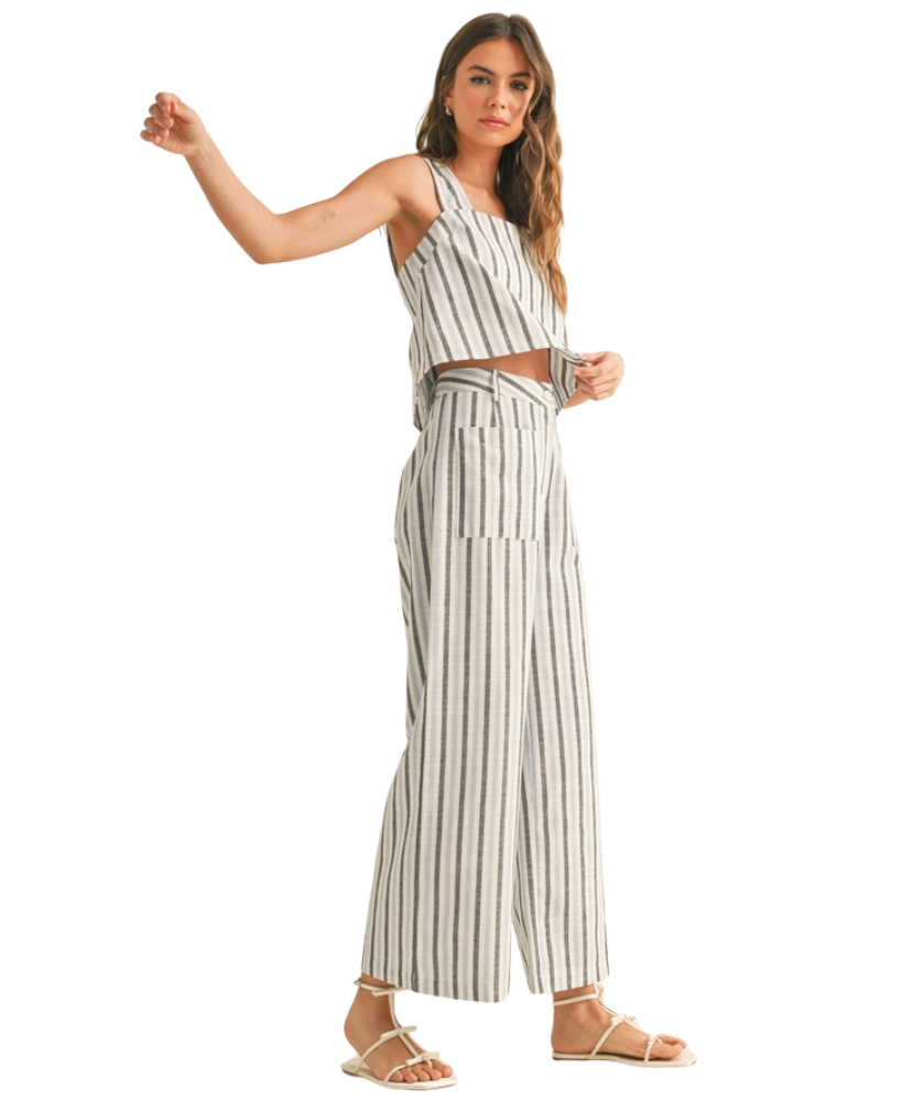 This top is giving breezy chic with a side of coastal cool. The Paige Striped Top features a boxy fit, bold straps, and button-back detail that keeps things fresh. Whether you're pairing it with the matching linen pants or styling it solo, it’s got summer written all over it. Trust us—this one’s made for rooftop lunches and beach boardwalk strolls.