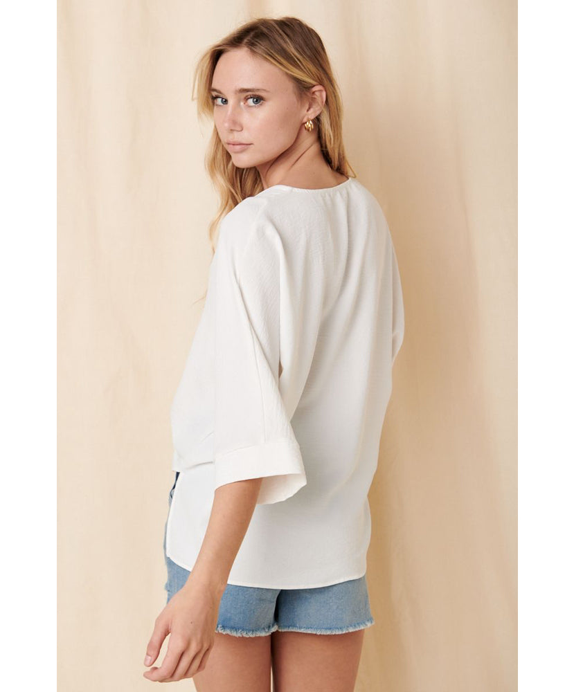 V-neck pleat detail front dolman blouse.