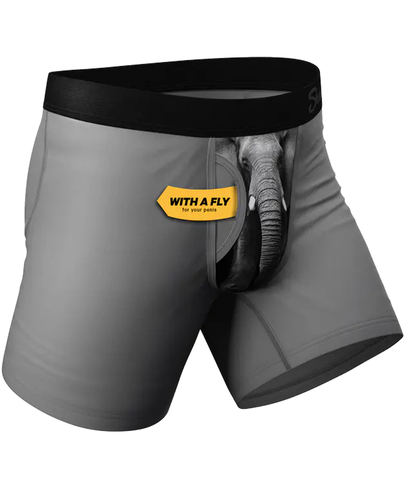 Did you know that an elephant trunk is the most sensitive organ of all mammals? That's pretty neat. What were you thinking it was you little minx? Another fun fact is that an elephant's trunk is not your most sensitive organ, that's actually reserved for a different body part. Without drawing too many comparisons between this print of underwear and where it sits, we'll just call this pair of elephant patterned Ball Hammock with fly The Junk In The Trunk in hopes that you can channel that BEE (Big Elephant Energy).