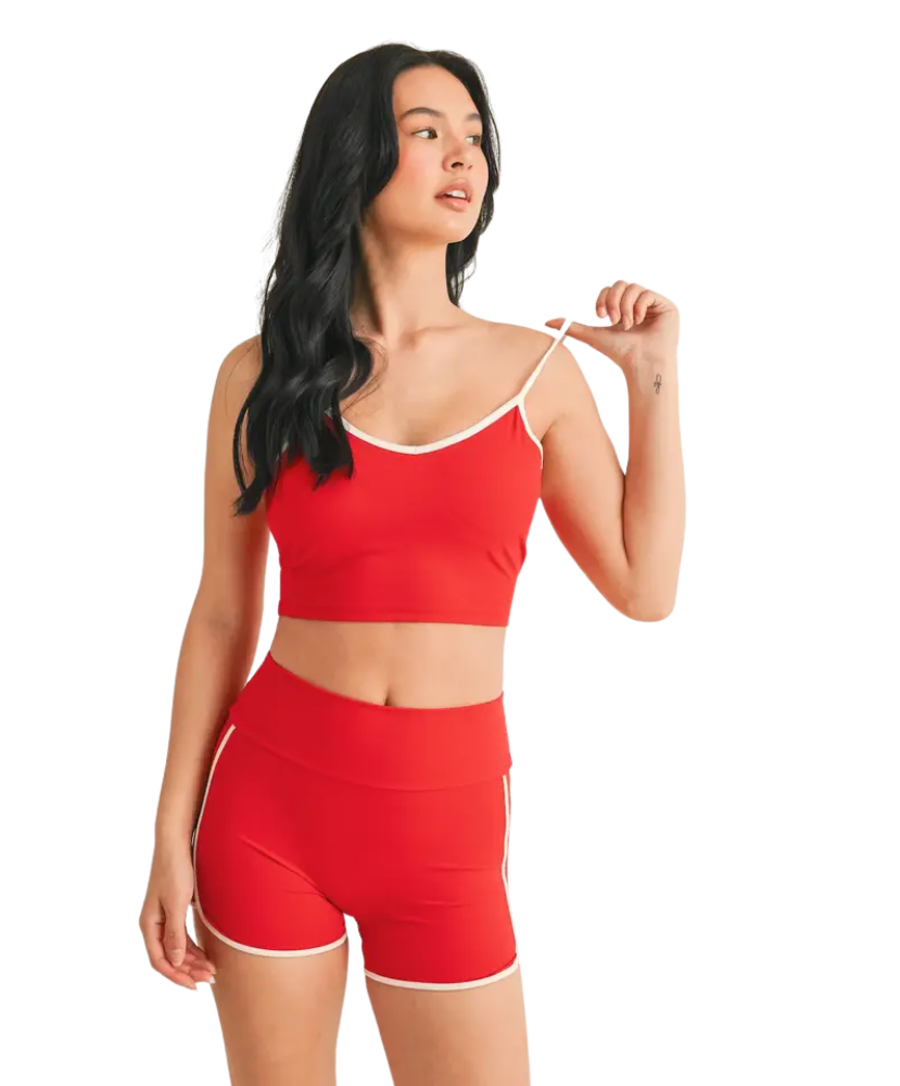 Serve sporty-chic energy with the Claire Contrast Crop Tank. With sleek white piping and a bold pop of color, this flattering crop brings serious retro vibes with modern comfort. It’s stretchy, breathable, and built for whatever the day throws your way.