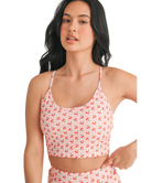 Add a pop of playful charm to your activewear lineup with this cherry gingham crop tank. Designed with a flattering racerback cut, adjustable straps, and removable padding, it’s just the right mix of cute and functional—whether you're on the move or just vibing through the day.