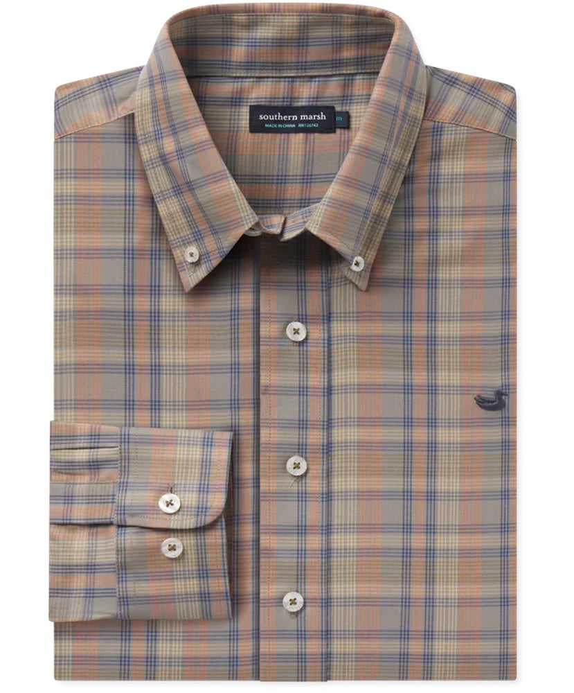 Whether you're at the office or meeting a client for drinks after work, the Benton Grid Dress Shirt is designed for a comfortable fit throughout the day. Pair with the Regatta Stretch Chino or Marlin Stretch Performance Pants for a classic look that doesn't sacrifice comfort.