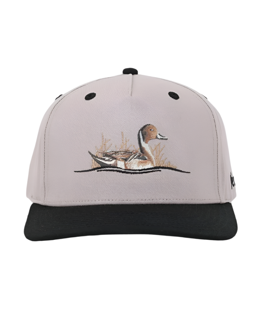 The Pinny Hat pays homage to one of the most graceful ducks in the wild—the pintail. This light grey and black cap features an intricately embroidered design that captures the bird’s natural beauty with striking detail. With structured construction and classic outdoor style, it’s built for the field but sharp enough for everyday wear.