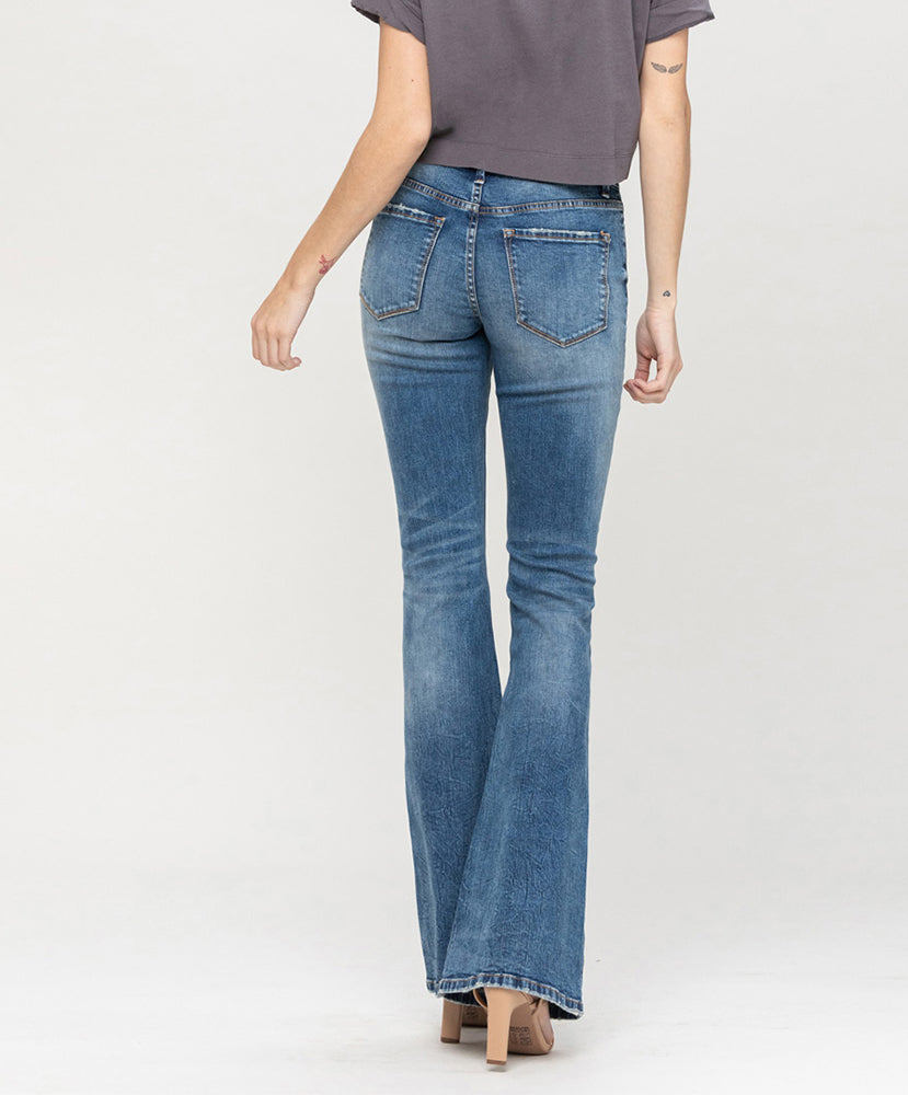 High rise, button-fly, pintuck double waistband flare jeans!