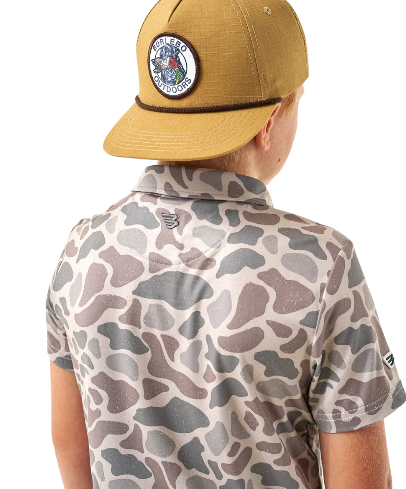 Built for young outdoorsmen, this polo blends performance comfort with rugged camo style. Designed with Burlebo’s best-selling performance fabric, it’s lightweight, breathable, and ready for everything from school days to hunting camp. With quick-dry technology, UPF protection, and antimicrobial properties, this polo keeps kids cool, comfortable, and confident no matter the adventure.
