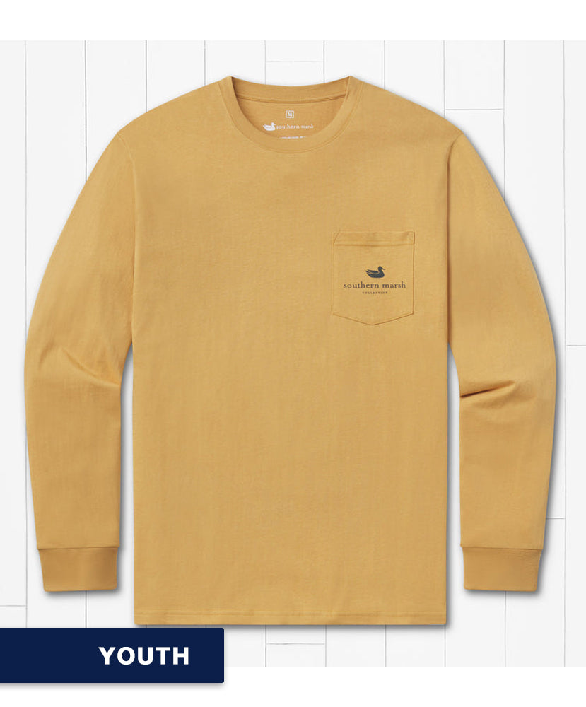 Showcasing your most loyal hunting companion, our Youth Gun Dog Collection – Black Lab long sleeve tee is crafted from soft cotton fabric and boasts a printed neck tag for added comfort. This beautiful design brings to mind the thrill of the hunt and the loving companionship of a furry family member making it perfect for dog lovers and aspiring hunters everywhere.