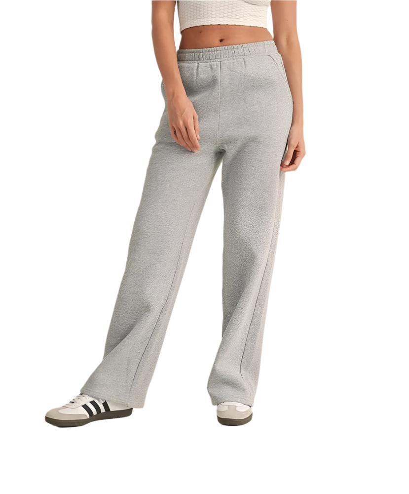 Cozy fleece sweatpants with a wide leg silhouette and side pockets.